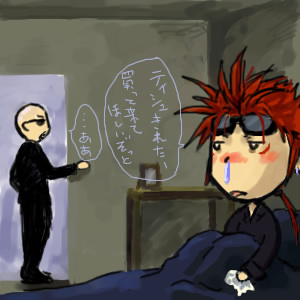 自分が風邪ひいていた時に描いたラクガキです。くだらない(笑)